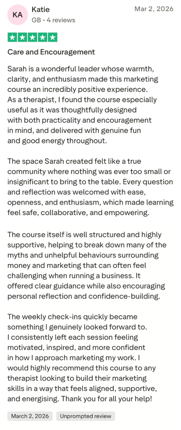 The Bootcamp focusses heavily on practical action steps, but also provides space to reflect and challenge unhelpful patterns around marketing and money.